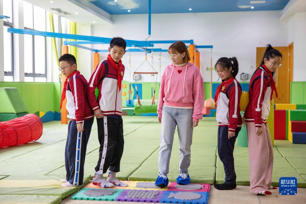 3月22日,寧波市江北區洪塘實(shí)驗學(xué)校的心理教師在感統訓練教室對學(xué)生進(jìn)行游戲式心理輔導。