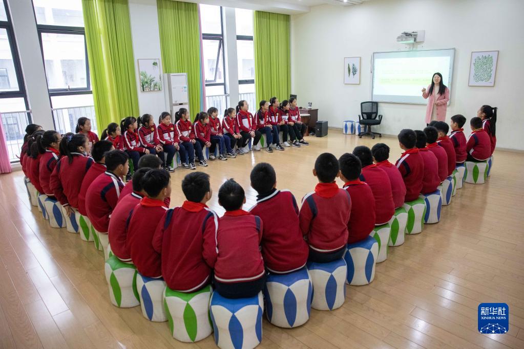 3月22日,寧波市江北區洪塘實(shí)驗學(xué)校的專(zhuān)職心理教師給學(xué)生們上心理團體輔導課。