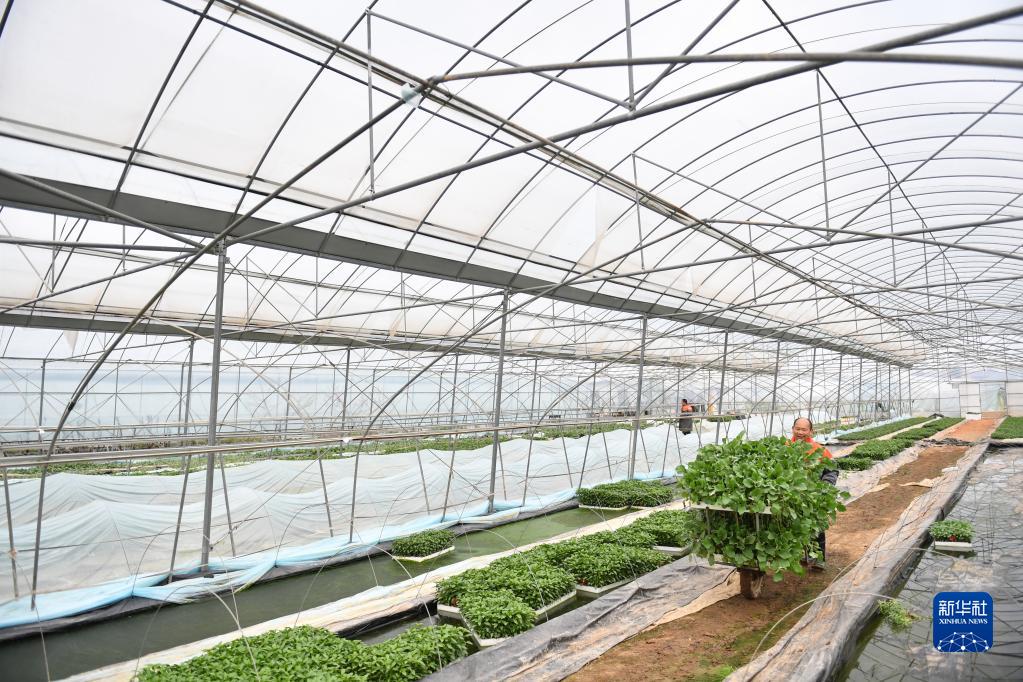 3月22日,農美種苗產(chǎn)業(yè)園工作人員在搬運蔬菜苗。