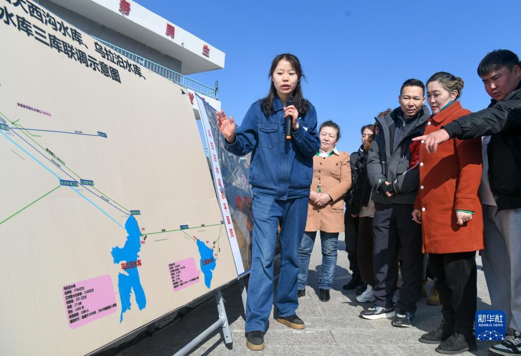 3月22日,在烏魯木齊水業(yè)集團有限公司烏拉泊水庫管理站,工作人員給居民講解烏魯木齊飲用水的來(lái)源。