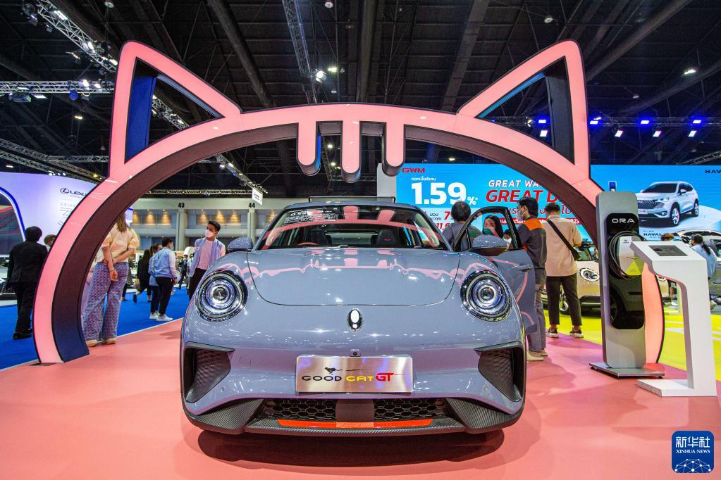 3月22日,觀(guān)眾在泰國曼谷國際車(chē)展上參觀(guān)歐拉好貓GT汽車(chē)。