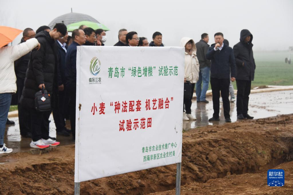 3月22日,青島市西海岸新區大場(chǎng)鎮小麥生產(chǎn)基地,參加“綠色增糧”農技培訓班的學(xué)員在觀(guān)摩學(xué)習。