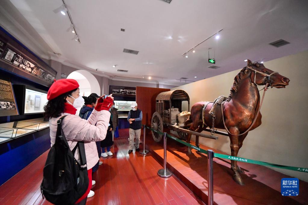 3月23日,游客來(lái)到天津郵政博物館參觀(guān)“龍行天下 津郵風(fēng)采”主題郵政文化展。