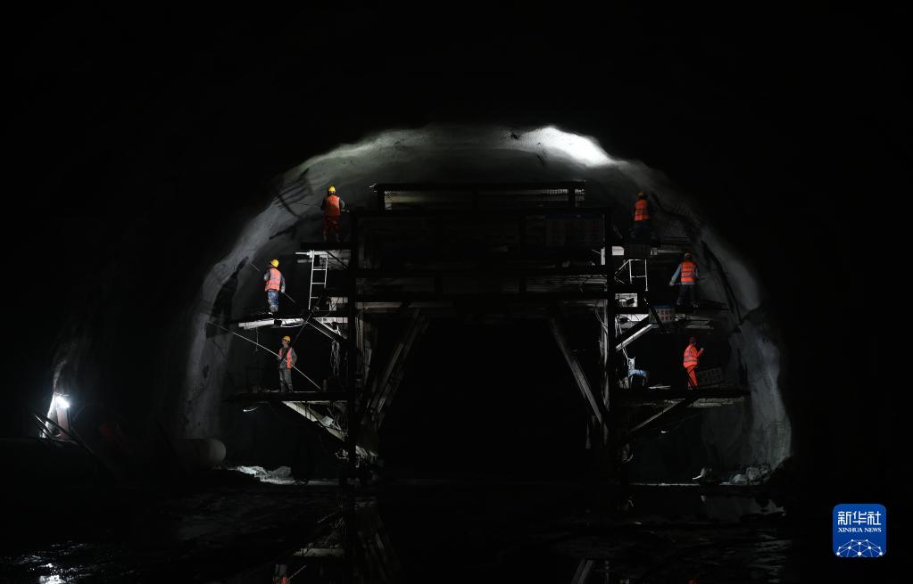 3月23日,工人在承平高速河北興隆段的一處隧道內施工。
