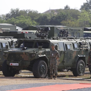 這是3月23日在柬埔寨王家軍某訓練基地拍攝的參加中柬“金龍-2023”聯(lián)演的軍人和裝備。