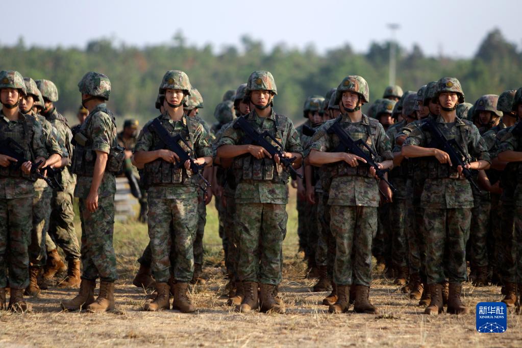 中柬“金龍-2023”聯(lián)演開(kāi)始儀式23日在柬埔寨王家軍某訓練基地舉行。中方帶隊領(lǐng)導、南部戰區陸軍副參謀長(cháng)陳敏田少將,柬埔寨王家軍副總司令兼陸軍司令洪瑪奈上將分別致辭。聯(lián)演雙方全體參演官兵、多國駐柬武官以及東南亞多國觀(guān)察員參加了儀式。新華社發(fā)(批隆攝)