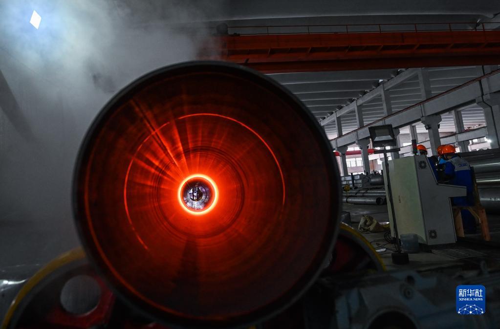 在位于嘉興市的國家專(zhuān)精特新“小巨人”企業(yè)——浙江德威不銹鋼管業(yè)股份有限公司鋼管熱處理車(chē)間,熱處理工在進(jìn)行鋼管焊后固溶處理(3月23日攝)。