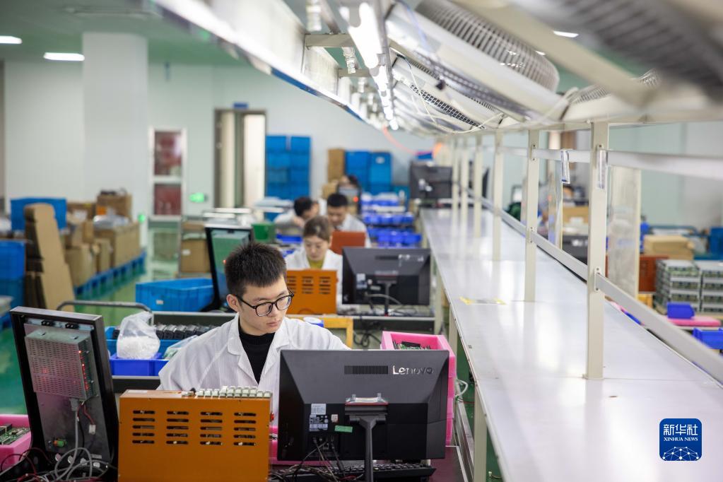 寧波伊士通技術(shù)股份有限公司的員工在生產(chǎn)線(xiàn)上工作(3月21日攝)。