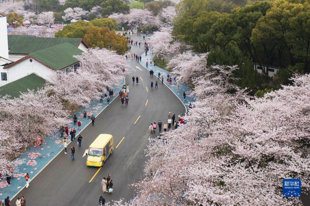 近日,江蘇無(wú)錫太湖黿頭渚景區里櫻花盛放,眾多游客前來(lái)賞櫻游玩。