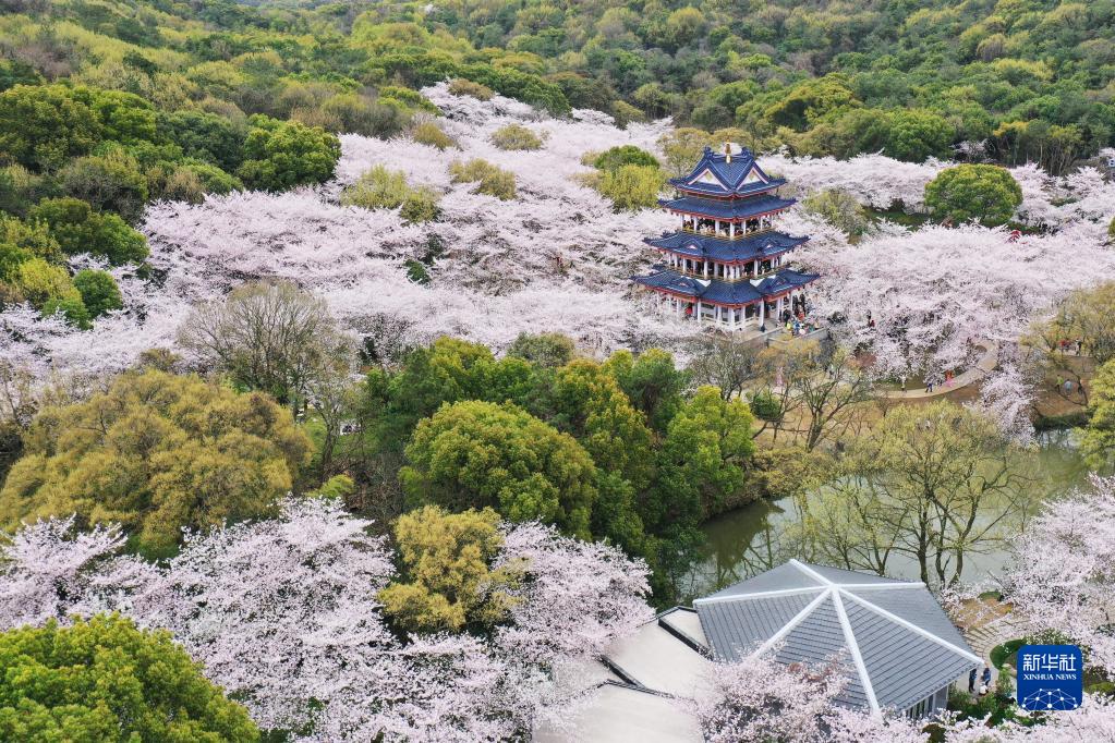 近日,江蘇無(wú)錫太湖黿頭渚景區里櫻花盛放,眾多游客前來(lái)賞櫻游玩。