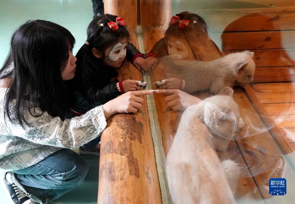 3月24日,游客在銀基動(dòng)物王國內觀(guān)看小獅子。