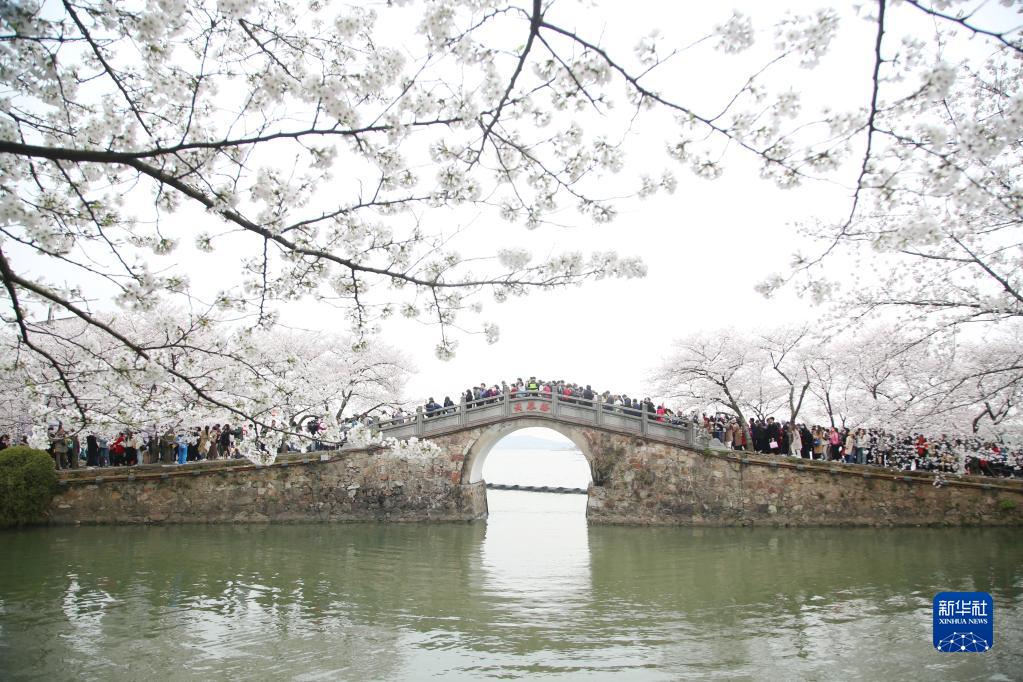 3月25日,游客在江蘇無(wú)錫黿頭渚景區觀(guān)賞櫻花。