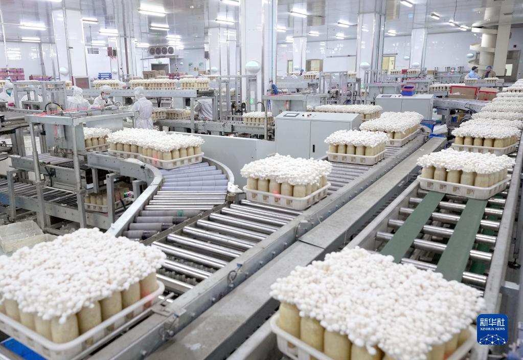 3月25日,河北省昌黎縣大蒲河鎮一家食用菌企業(yè)的工人在食用菌分裝線(xiàn)上工作。