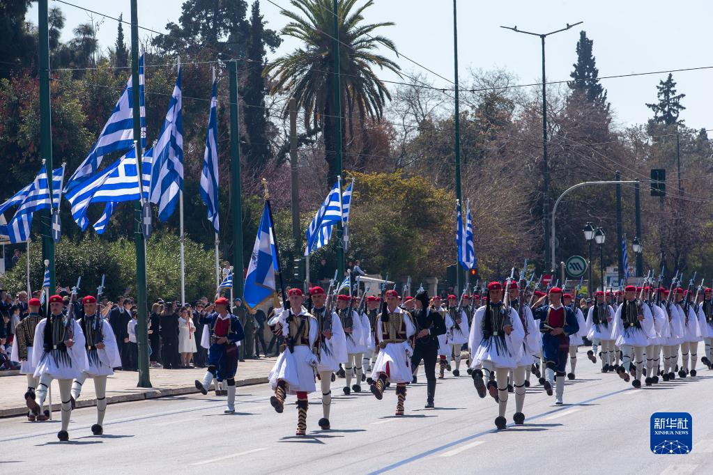 3月25日,希臘總統衛隊參加在雅典舉行的獨立日閱兵儀式。