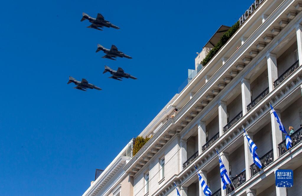 這是3月25日在希臘雅典獨立日閱兵儀式上拍攝的戰斗機。