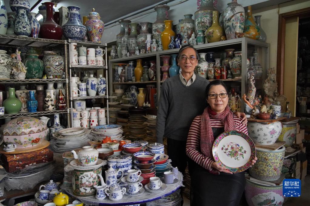2月24日,粵東磁廠(chǎng)第三代傳人曹志雄與太太在工場(chǎng)合影。新華社記者 呂小煒 攝