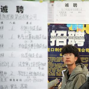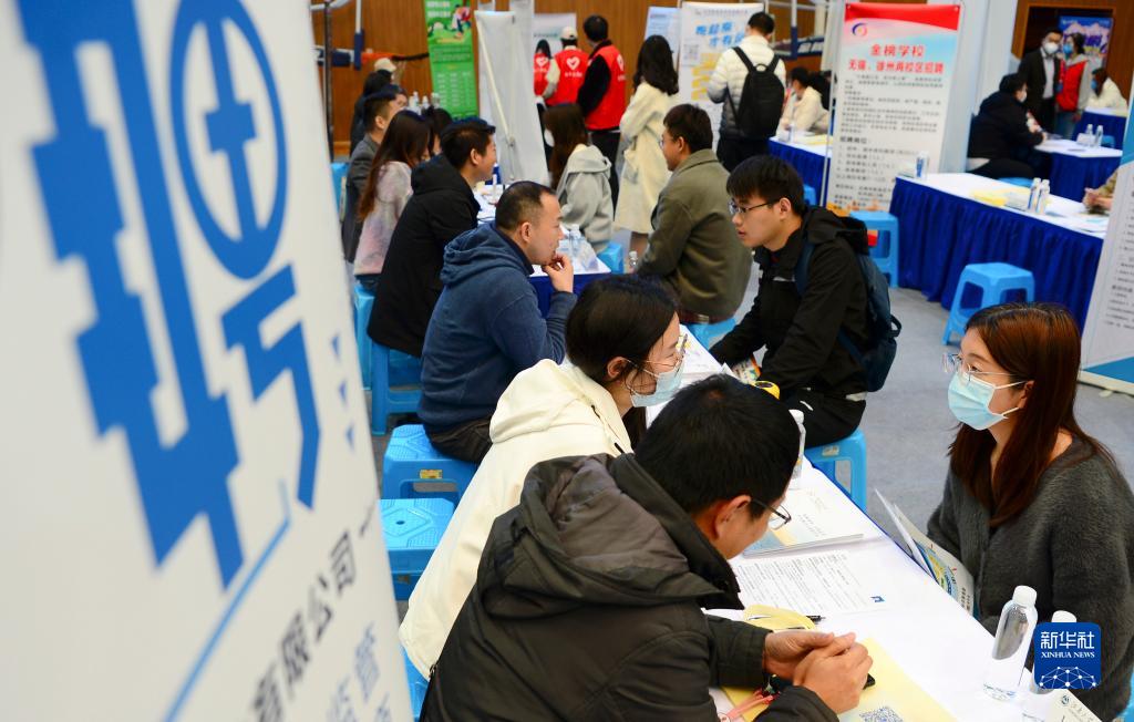 3月26日,求職者在位于江蘇無(wú)錫的江南大學(xué)2023屆畢業(yè)生春季大型招聘會(huì )現場(chǎng)咨詢(xún)崗位信息。