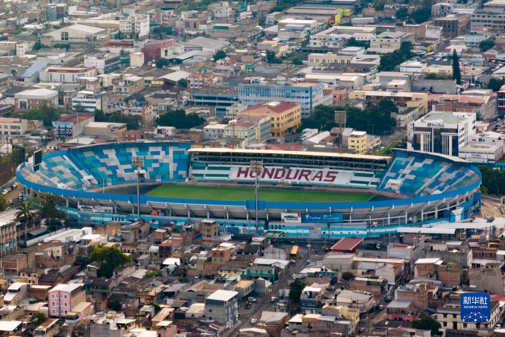 這是3月26日在洪都拉斯首都特古西加爾巴拍攝的國家體育場(chǎng)(無(wú)人機照片)。