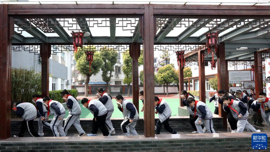 3月27日,江蘇省蘇州市胥江中心小學(xué)校的學(xué)生進(jìn)行安全疏散演練。