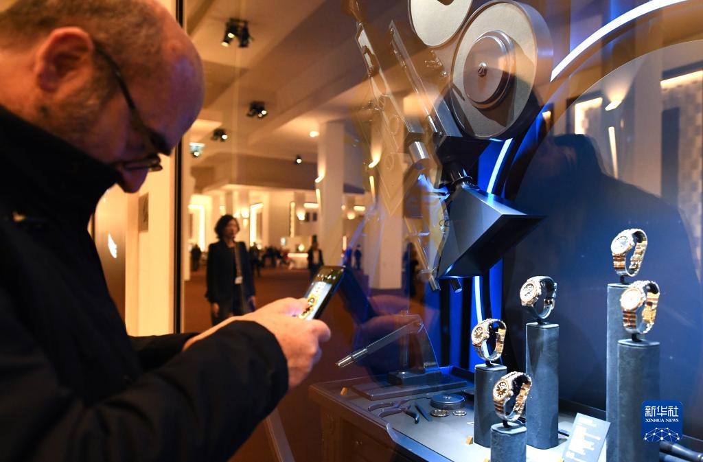 3月27日,在瑞士日內瓦,一名男子在“鐘表與奇跡”高級鐘表展上參觀(guān)。
