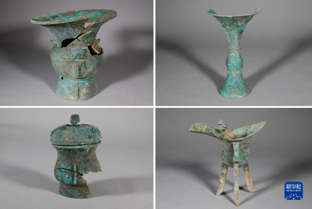 河南安陽(yáng)殷墟商王陵祭祀坑K23出土的青銅器(拼版資料照片)。