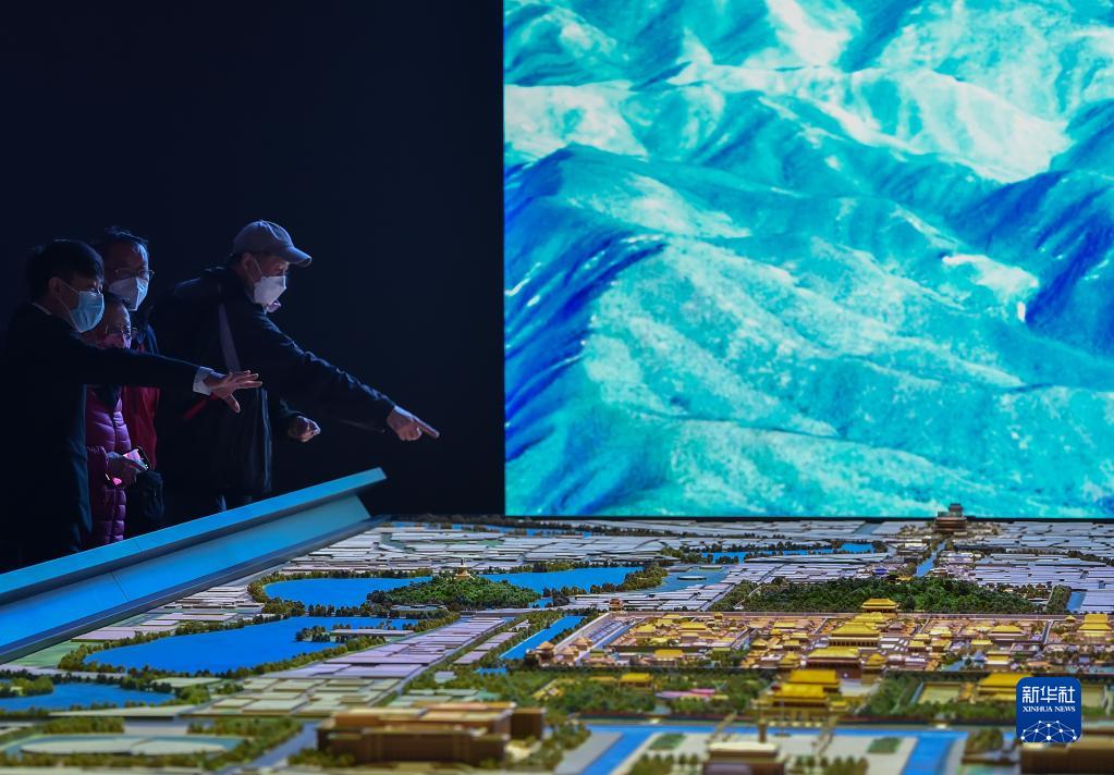 3月28日,觀(guān)眾在觀(guān)看北京中軸線(xiàn)沙盤(pán)。