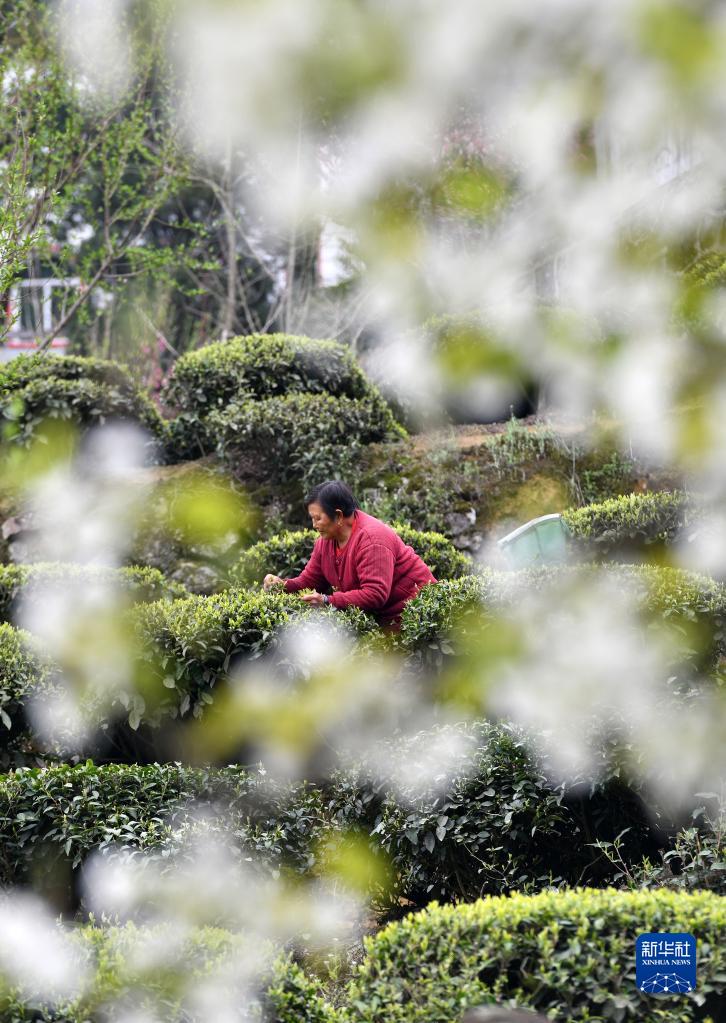 3月28日,茶農在湖北省宜昌市秭歸縣茅坪鎮松樹(shù)坳村一茶園采摘明前茶。