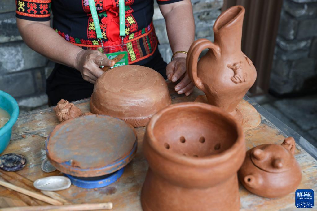 3月28日,黎陶非遺傳承人在展覽現場(chǎng)制作陶器。