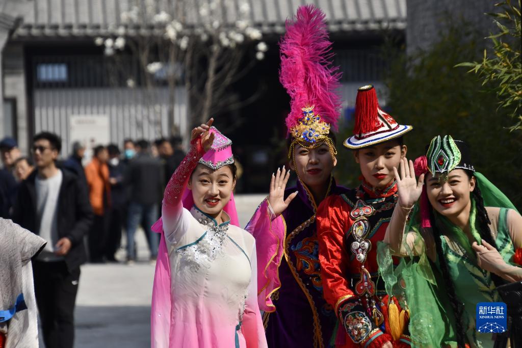 3月28日,來(lái)自甘肅省的演員在準備表演歌舞。