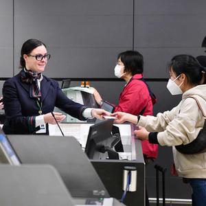 3月27日,在意大利羅馬菲烏米奇諾機場(chǎng),國航羅馬直飛北京航班的旅客準備登機。