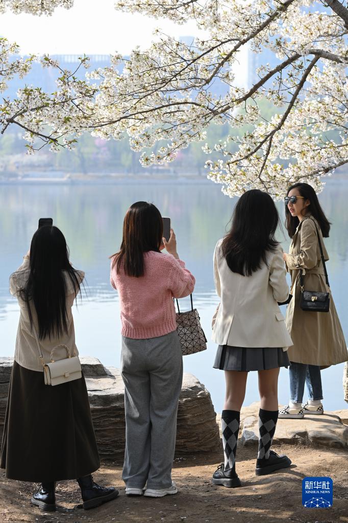 3月29日,游客在北京玉淵潭公園觀(guān)賞盛開(kāi)的櫻花。