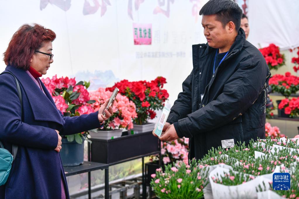 3月28日,游客在貴州省畢節市百里杜鵑管理區花卉展示點(diǎn)選購花卉時(shí)掃碼付款。