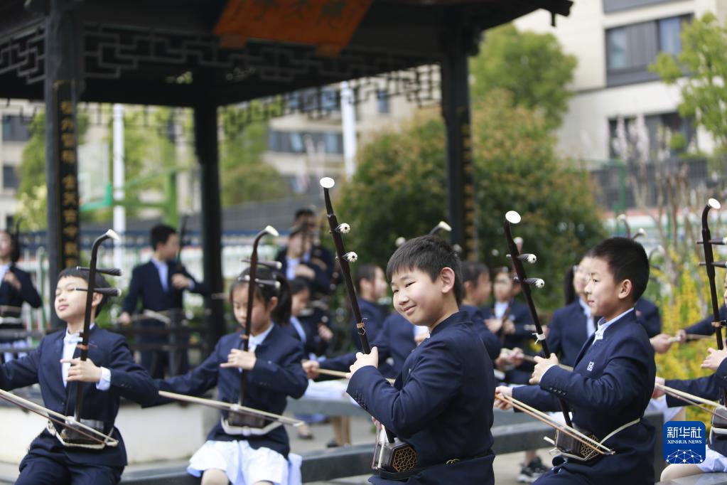 3月29日,江蘇無(wú)錫梅村實(shí)驗小學(xué)學(xué)生在演奏二胡。