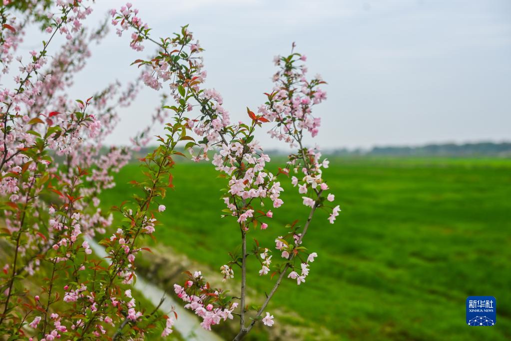3月29日,浙江省湖州市東林鎮東華村經(jīng)過(guò)土地綜合整治后建成的高標準農田邊春花綻放。