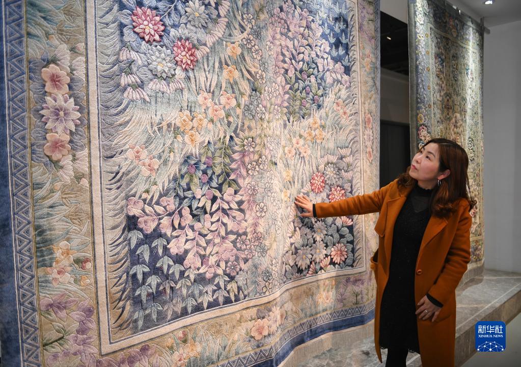 3月21日,四川閬中一家企業(yè)工作人員在介紹閬中絲毯。