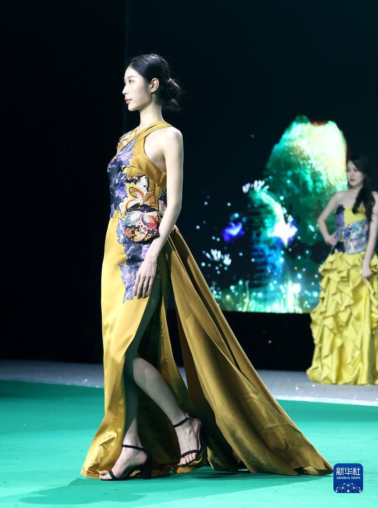 3月29日,模特在“綠色纖維制品可信平臺”發(fā)布會(huì )上展示可循環(huán)再利用的時(shí)裝。