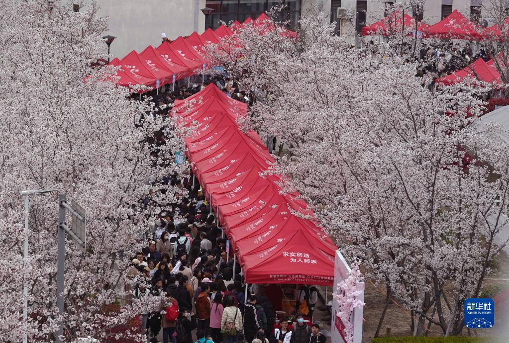 “華東師范大學(xué)第三十五屆節糧月暨第九屆食品節”活動(dòng)現場(chǎng),掩映在櫻花林中(3月29日攝)。