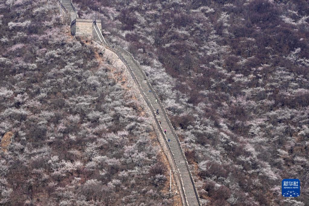 3月29日,游客在山花遍野的慕田峪長(cháng)城景區參觀(guān)游覽。