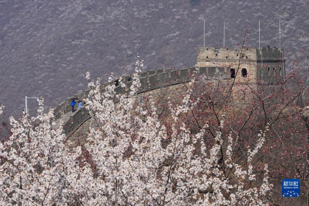 3月29日,游客在山花遍野的慕田峪長(cháng)城景區參觀(guān)游覽。