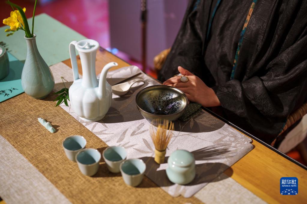 3月29日,在西班牙巴塞羅那歐洲現代藝術(shù)博物館,工作人員展示宋代茶藝。