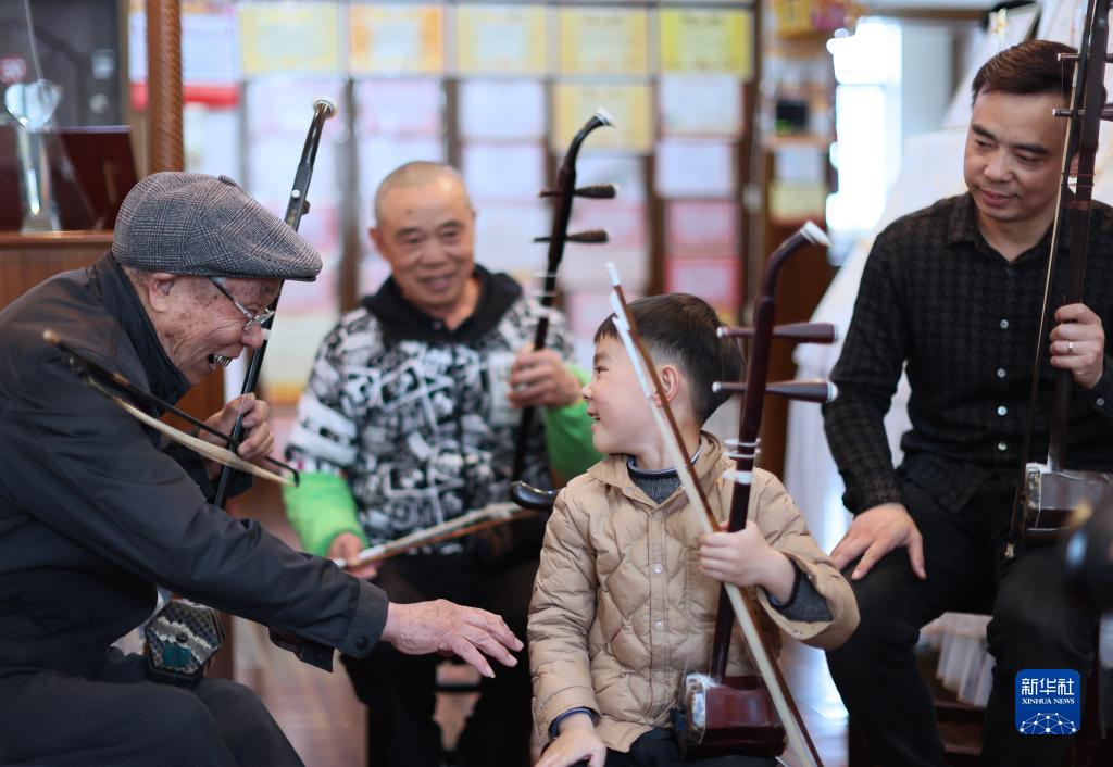識譜、拉弦樣樣不懂,錢(qián)?;奶幱懡?,然后回家摸索練習,慢慢掌握二胡演奏技巧。受他的影響,兒子錢(qián)建平也愛(ài)上了二胡演奏。生活條件越來(lái)越好,孫子錢(qián)鈞在女兒錢(qián)智嫻5歲時(shí)便開(kāi)始請專(zhuān)業(yè)二胡老師授課,父女倆一起學(xué)習,共同提高。2019年,錢(qián)智嫻獲得第四屆“敦煌杯”中國二胡演奏比賽非職業(yè)少年B組金獎。如今,錢(qián)鈞7歲的兒子錢(qián)智臣以姐姐為榜樣,也開(kāi)始練習二胡。