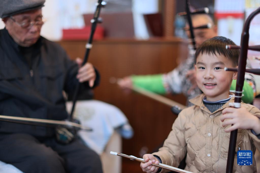 識譜、拉弦樣樣不懂,錢(qián)?;奶幱懡?,然后回家摸索練習,慢慢掌握二胡演奏技巧。受他的影響,兒子錢(qián)建平也愛(ài)上了二胡演奏。生活條件越來(lái)越好,孫子錢(qián)鈞在女兒錢(qián)智嫻5歲時(shí)便開(kāi)始請專(zhuān)業(yè)二胡老師授課,父女倆一起學(xué)習,共同提高。2019年,錢(qián)智嫻獲得第四屆“敦煌杯”中國二胡演奏比賽非職業(yè)少年B組金獎。如今,錢(qián)鈞7歲的兒子錢(qián)智臣以姐姐為榜樣,也開(kāi)始練習二胡。