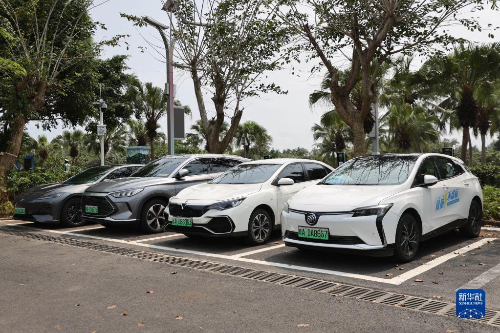 3月30日在博鰲亞洲論壇國際會(huì )議中心停車(chē)場(chǎng)拍攝的新能源車(chē)。