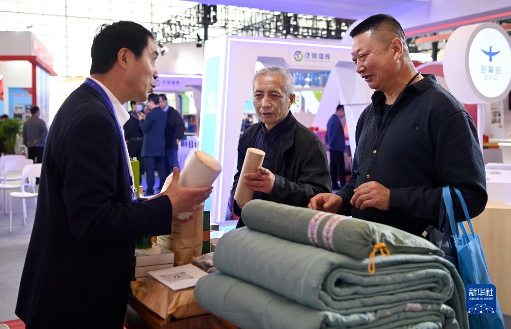 3月30日,首屆全國退役軍人創(chuàng )業(yè)創(chuàng )新成果展交會(huì )現場(chǎng),參觀(guān)者在展位前咨詢(xún)。