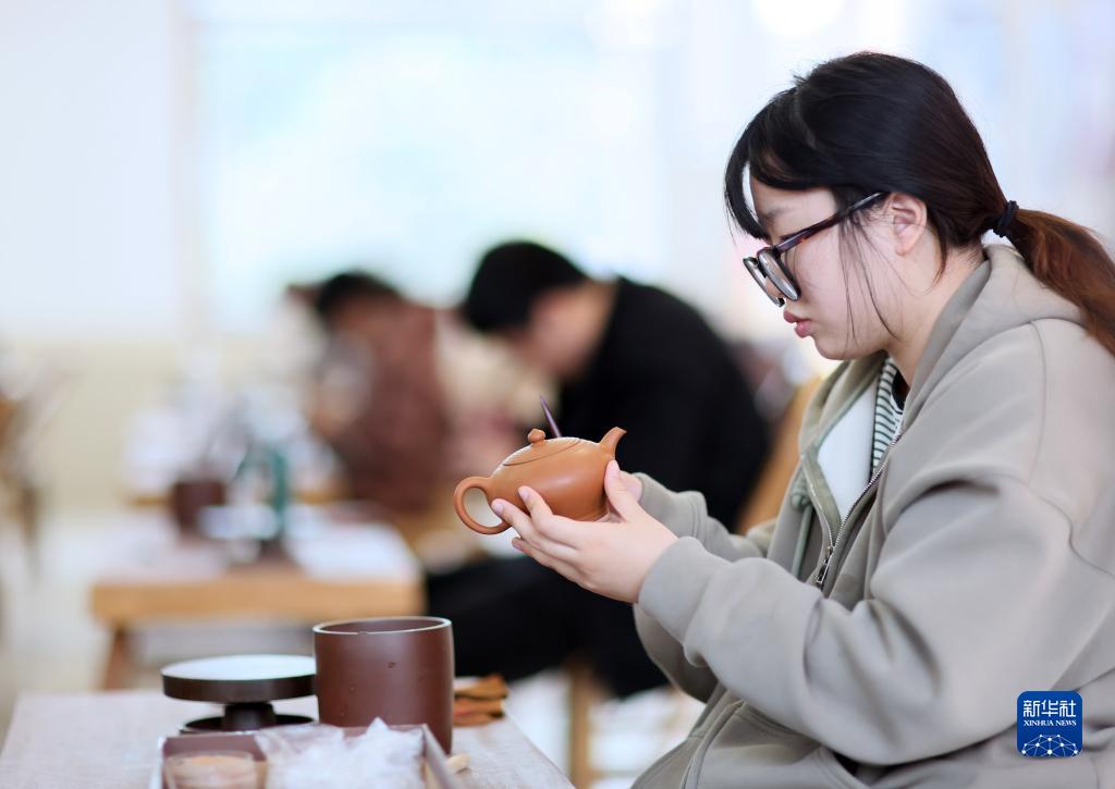 3月30日,學(xué)員在江蘇宜興西望紫砂陶瓷專(zhuān)業(yè)合作社學(xué)習制作紫砂壺。