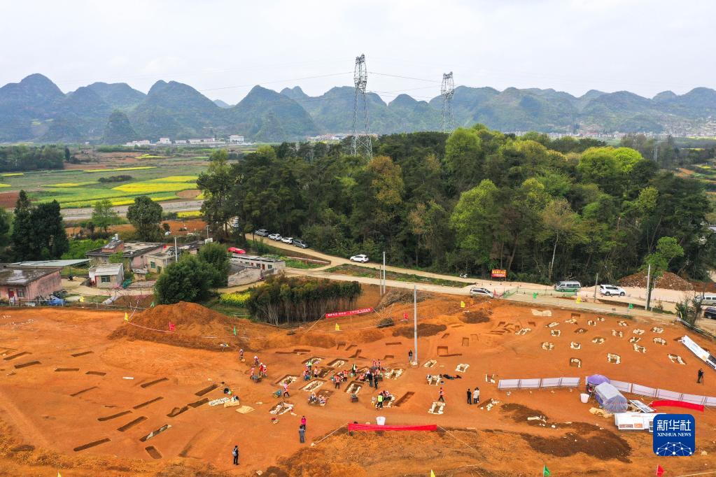 3月30日拍攝的貴州貴安新區大松山墓群挖掘現場(chǎng)(無(wú)人機照片)。