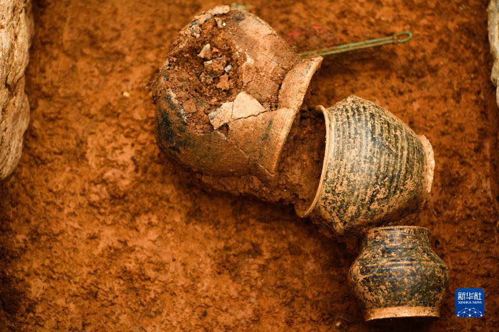 這是3月30日在貴州貴安新區大松山墓群挖掘現場(chǎng)拍攝的出土文物。