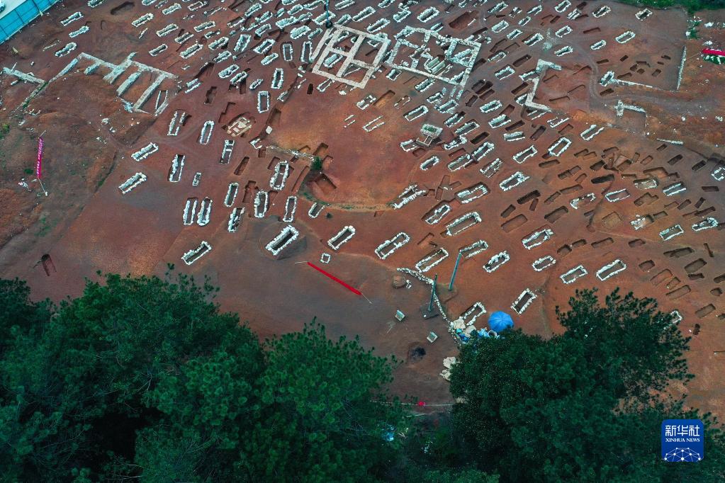 3月30日拍攝的貴州貴安新區大松山墓群挖掘現場(chǎng)(無(wú)人機照片)。