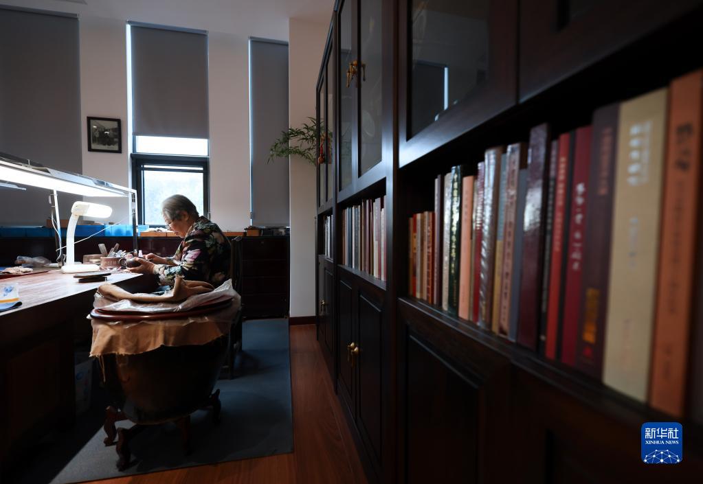 3月30日,曹婉芬在江蘇宜興的工作室制作紫砂壺。