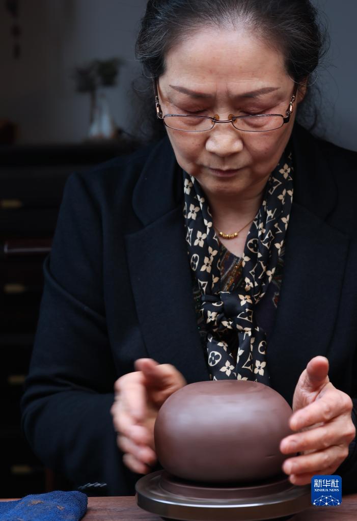 江蘇省無(wú)錫市宜興市素有“中國陶都”美譽(yù),擁有一批優(yōu)秀的紫砂藝人,83歲的中國陶瓷藝術(shù)大師曹婉芬是其中的杰出代表。她出生于宜興市蜀山古南街陶業(yè)世家,從小受紫砂藝術(shù)熏陶。1955年,曹婉芬拜師紫砂名家朱可心,并得到裴石民、王寅春、顧景舟等大師傳授技藝。近70年來(lái),她潛心創(chuàng )作,食古而吐秀,不僅擅長(cháng)紫砂花器,熟練掌握光器、筋紋器,還能制作一整套做壺工具。曹婉芬的紫砂作品在國際及全國陶瓷評比中屢屢獲獎。在她的影響和傳授下,后代們也從事紫砂行業(yè)并取得成就。